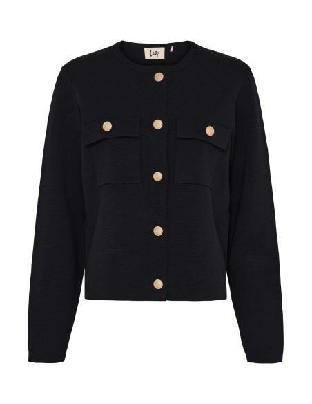 Jena Pocket Cardigan är en klassisk och elegant kofta i kortare, lätt figursydd modell som ger en feminin silhuett. De dekorativa guldknapparna och bröstfickorna med lock tillför en exklusiv känsla, medan den mjuka viskosblandningen ger komfort hela dagen. Perfekt att styla för både kontor och vardag.