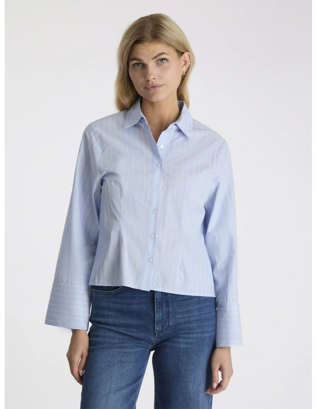 Rosa Stripe Shirt från Neo Noir är en tidlös skjorta i 100% bomull med klassiskt randigt mönster. Den har en rak och ledig passform som gör den enkel att styla både till vardags och mer uppklädda tillfällen. Färgen Light Blue ger en fräsch och modern känsla som fungerar året runt. En mångsidig garderobsklassiker som kan bäras både instoppad i jeans eller löst över byxor för en mer avslappnad look.