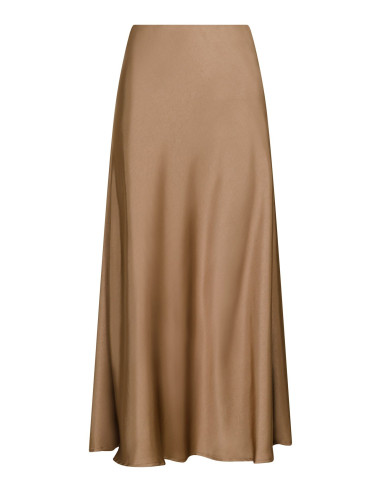 Bovary Skirt är en elegant långkjol i slät satäng med smickrande snedskuren design. Midjan har en bekväm resår på insidan som ger både passform och komfort. Den mörkt taupefärgade nyansen gör kjolen enkel att styla för både vardag och fest.