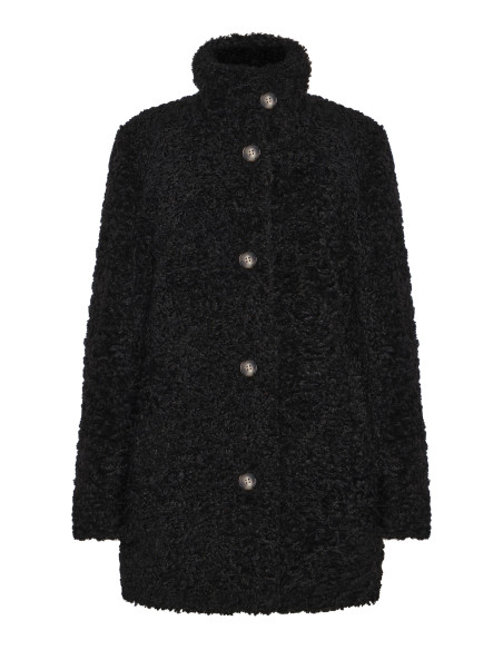 Marcy Coat från Saki är en tidlös och elegant fuskpäls i svart. Den är tillverkad i mjuk Faux Silky Lamb-kvalitet med en lockig struktur inspirerad av Toscana-får, vilket ger en sofistikerad look och härlig känsla. Den klassiska längden och bekväma passformen gör kappan till ett mångsidigt plagg som fungerar lika bra till vardag som till fest – en modern favorit för kyliga dagar.