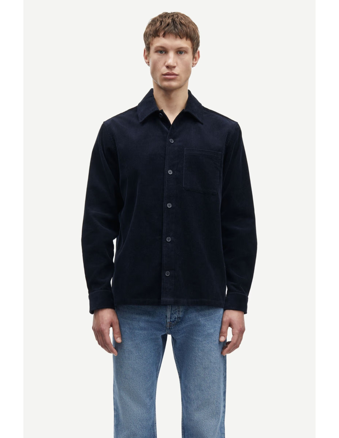 Damon JS Shirt från Samsø Samsø är en långärmad overshirt i mjuk manchester, tillverkad i 100% ekologisk bomull. Den avslappnade passformen och den klassiska designen med knappstängning, bröstficka och manschetter gör den till ett mångsidigt plagg som fungerar både som skjorta och lätt jacka. Perfekt att bära över en T-shirt för en ledig look eller att styla mer uppklätt med chinos.