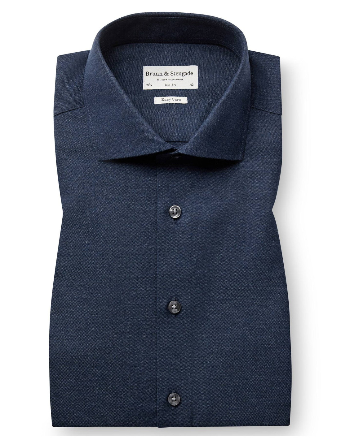 Tatis Shirt från Bruun & Stengade är en elegant slim fit-skjorta som ger en mer åtsittande och modern siluett. Den är tillverkad i 100% bomull i melerad dobbyväv och behandlad för att minimera behovet av strykning. Med klassisk design, cutaway-krage, fransk placket med mörka pärlknappar och justerbara manschetter är detta en skjorta som fungerar lika bra till arbetet som till festliga tillfällen.