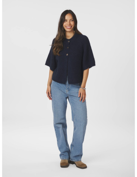 En boxig stickad cardigan med mjuk och fluffig känsla som ger en trendig och bekväm look. De vida ärmarna skapar en avslappnad silhuett medan de dekorativa knapparna framtill tillför en elegant detalj. Perfekt att bära över både klänningar och toppar för en varm men stilfull outfit. En mångsidig kofta som kombinerar modern design med komfort och är ett självklart inslag i höstgarderoben.