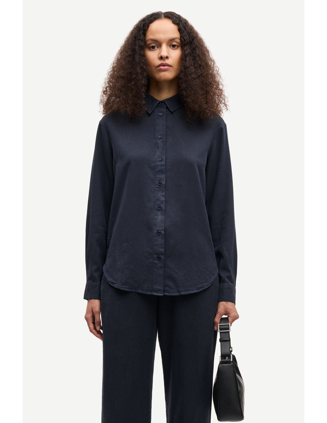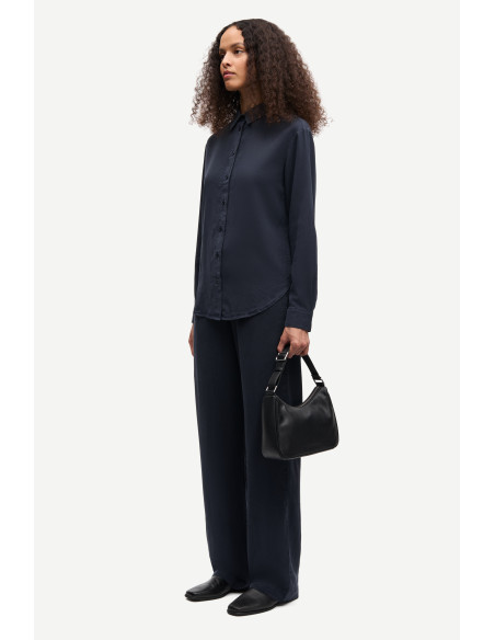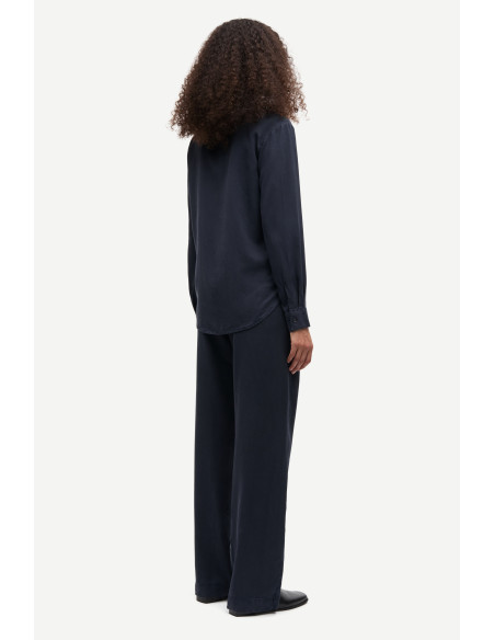Madisoni Shirt är en stilren och slimmad skjorta i en modern design med långa ärmar och nedhasade axlar för en avslappnad känsla. Den spetsiga kragen och knäppning framtill samt vid manschetterna ger ett klassiskt uttryck, medan den rundade fållen och sidosömmarna skapar en feminin silhuett. Tillverkad i 100% TENCEL™ Lyocell – ett mjukt, följsamt och hållbart material framtaget av trä från ansvarsfullt skötta skogar. Färgen Salute är en djup blå ton som adderar sofistikerad elegans till både vardag och fest.