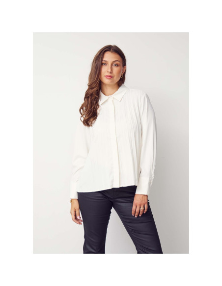 Frida Pleat Shirt är en feminin och elegant skjorta som kombinerar klassiska detaljer med en modern känsla. De fina vecken fram och bak ger en vacker silhuett och ett förfinat fall. Skjortan har dold knäppning och klassisk krage för en stilren look som fungerar lika bra till vardags som vid mer uppklädda tillfällen. Långa ärmar med manschett och knapp förstärker den välklädda känslan, medan den lätta polyesterkvaliteten gör skjortan bekväm, luftig och lättskött. Perfekt att styla med både jeans, finbyxor och kjol.