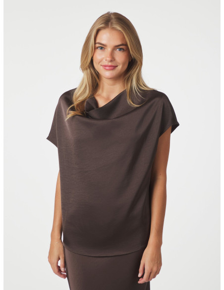 Annabeth Heavy Sateen Tee från Neo Noir är en elegant och stilren topp i mjuk satinkvalitet med vacker drapering framtill som ger ett sofistikerat uttryck. Den lätt glansiga ytan skapar en exklusiv känsla, perfekt för både vardag och fest. Den har en smickrande passform och korta ärmar som gör den enkel att bära till både kjol och byxa.