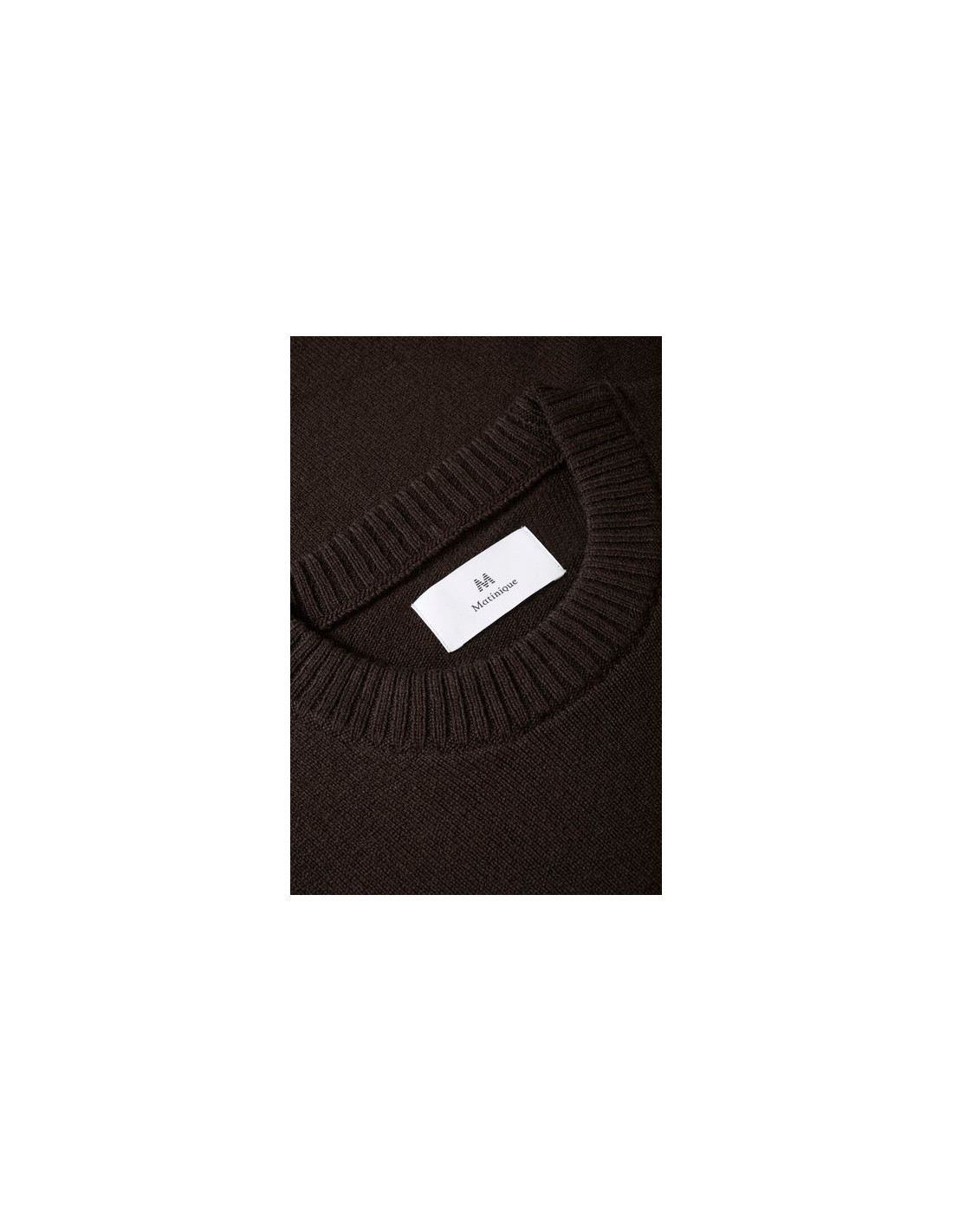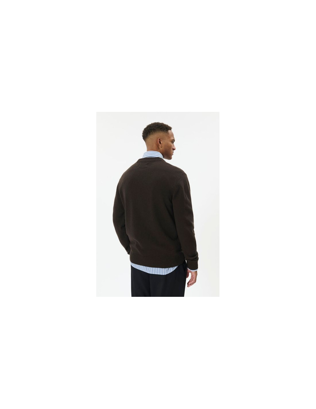 Maxwell 73 från Matinique är en klassisk och stilren stickad tröja i 100% lammull – en tidlös favorit som kombinerar värme, komfort och kvalitet. Den har en regular fit med rund hals och är det perfekta plagget för kyliga dagar. Passar lika bra till kontoret som till julens festligheter – en modern jultröja i elegant brun.