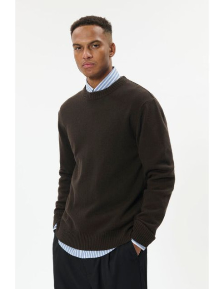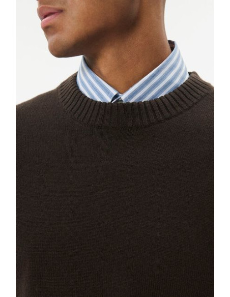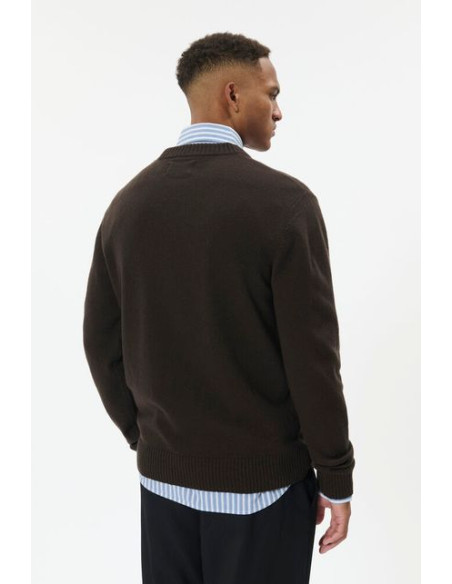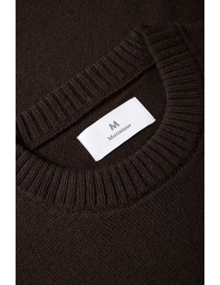 Maxwell 73 från Matinique är en klassisk och stilren stickad tröja i 100% lammull – en tidlös favorit som kombinerar värme, komfort och kvalitet. Den har en regular fit med rund hals och är det perfekta plagget för kyliga dagar. Passar lika bra till kontoret som till julens festligheter – en modern jultröja i elegant brun.