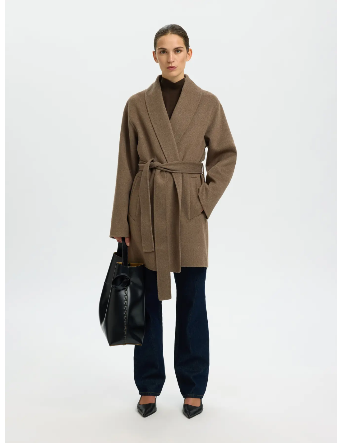 En elegant och tidlös ullkappa i handgjord känsla från Selected Femme. Alia Handmade Coat har en klassisk spridkrage, sidfickor och en rak, knälång silhuett som ger ett sofistikerat uttryck oavsett tillfälle. Den är fodrad för extra komfort och tillverkad i en återvunnen ullblandning – både varm och hållbar på samma gång. Perfekt till höstens och vinterns stilrena looks.