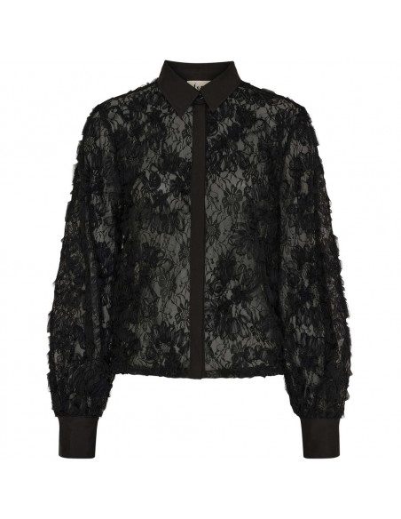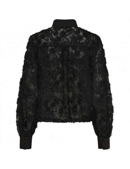 Kikki Shirt från Isay är en feminin och elegant skjorta med en unik spetsliknande struktur som ger en lätt och luftig känsla. Den har klassisk skjortkrage, dold knappstängning och långa ärmar med manschett och knapp. Tyget är mjukt, lätt och följsamt i 100% polyester, vilket gör den perfekt att bära både till vardags och till fest – lika snygg under en kavaj som över ett linne.