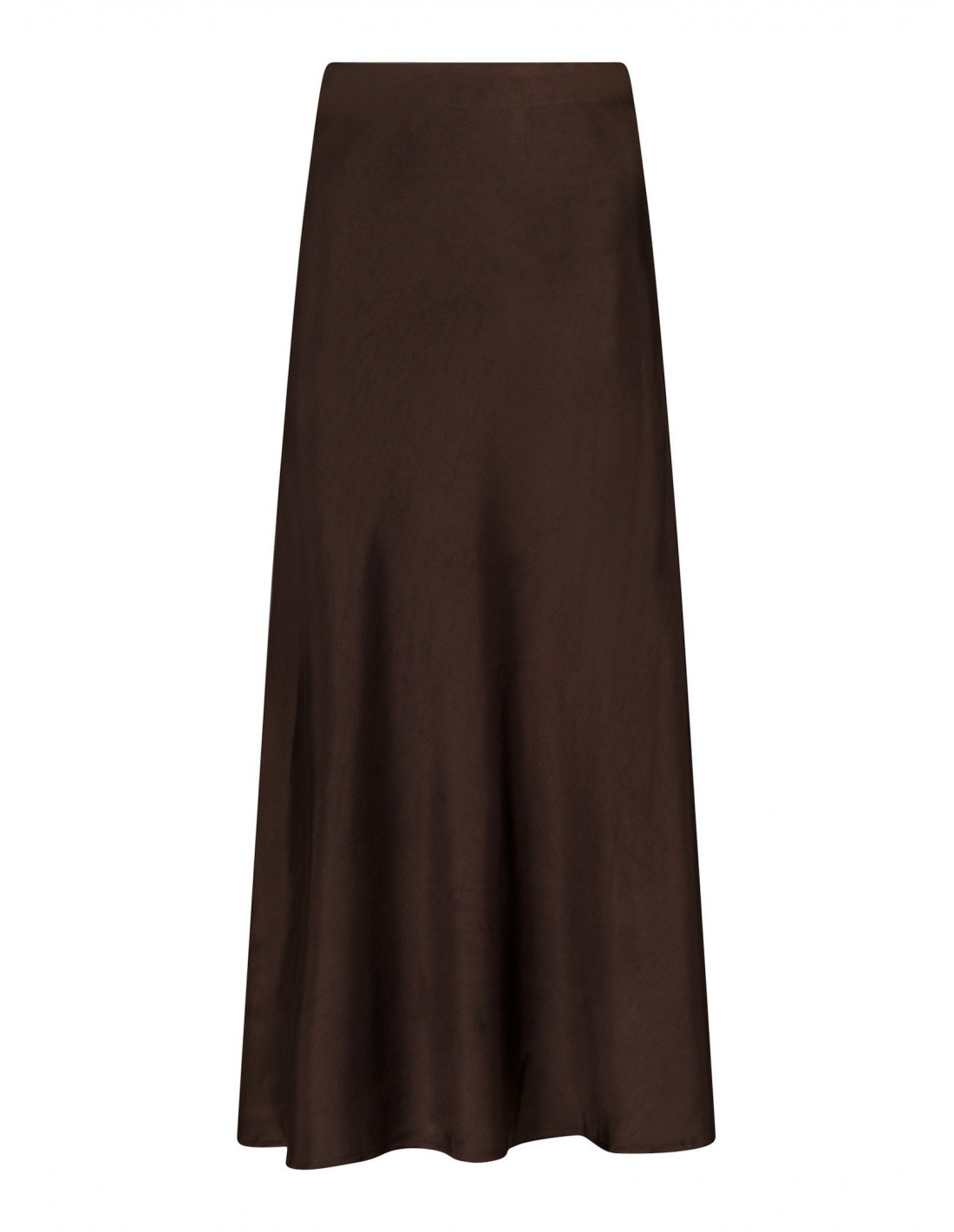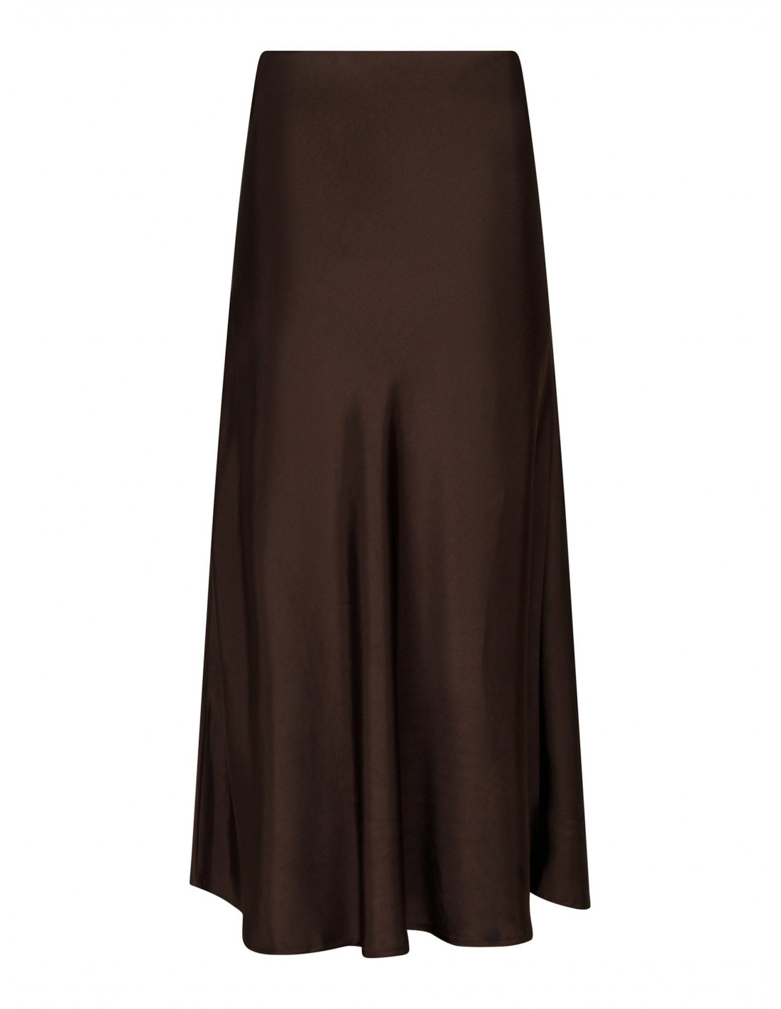 Bovary Skirt är en elegant långkjol i slät satäng med smickrande snedskuren design. Midjan har en bekväm resår på insidan som ger både passform och komfort. Den mörkt taupefärgade nyansen gör kjolen enkel att styla för både vardag och fest.