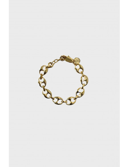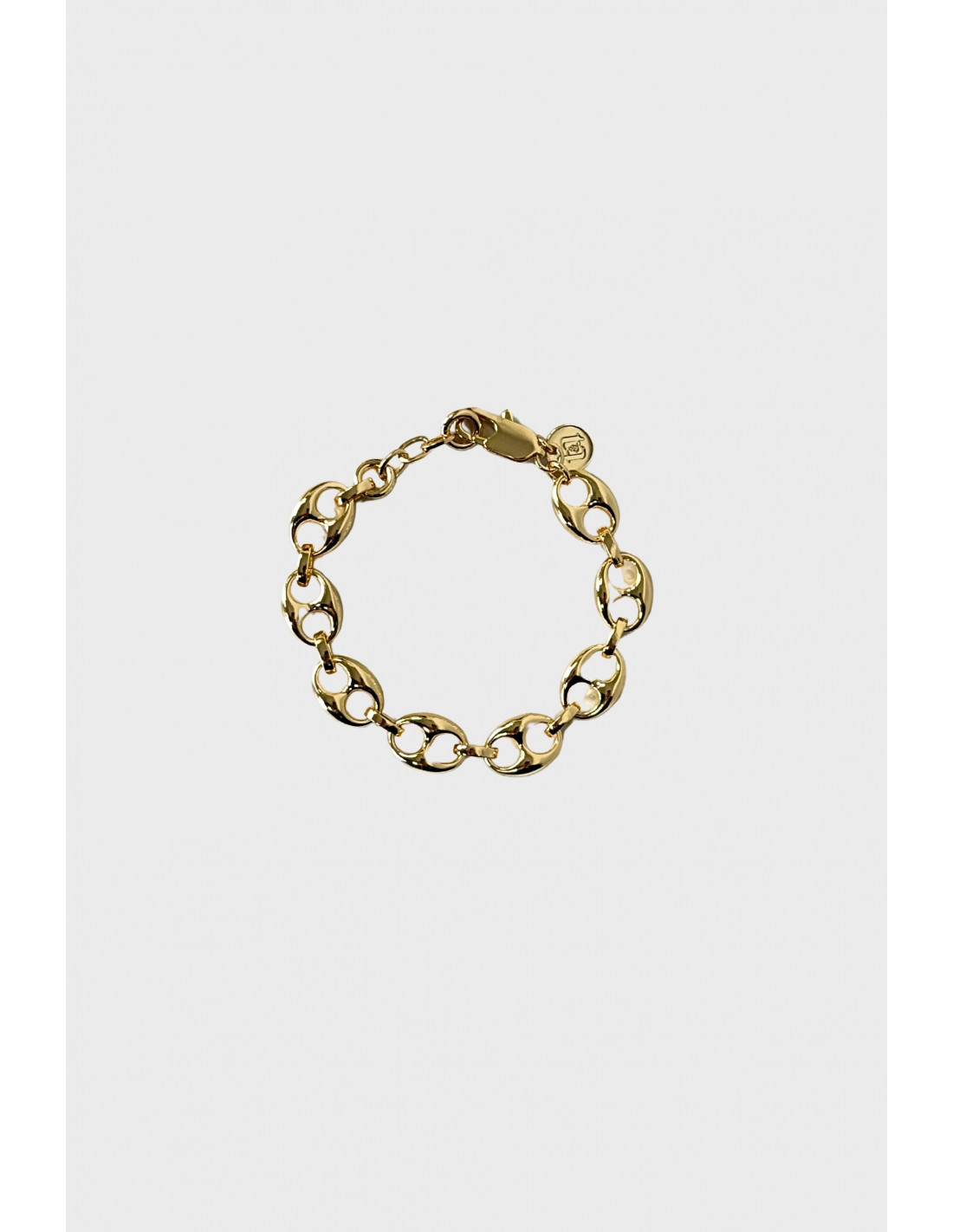 Ett kraftfullt och stilrent armband som ger en modern touch till varje outfit. Michelle Chunky Bracelet är designat för att bäras både till vardags och fest – en tidlös accessoar som håller över tid, både i stil och kvalitet. Smycket är tillverkat i slitstarka material och har en äkta guldplätering som ger en exklusiv finish.