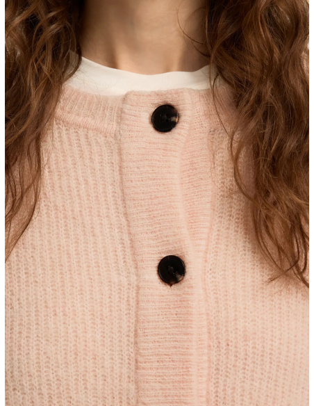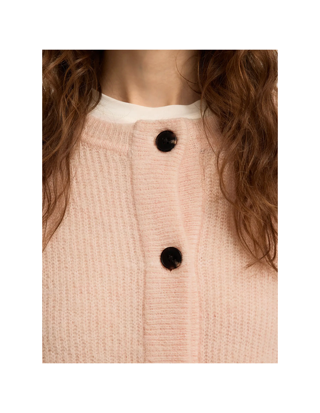 En tidlös cardigan med rund halsringning och klassisk knappstängning framtill. Designen är stickad i regular fit med raglanärmar som ger en smidig passform och rörelsefrihet. Ribbstickade muddar förstärker den mjuka silhuetten, medan den eleganta gröna färgen Kalamata gör plagget enkelt att styla både till vardag och kontor. Tillverkad i en exklusiv ull- och alpackablandning med certifierade fibrer för både värme, komfort och hållbarhet.