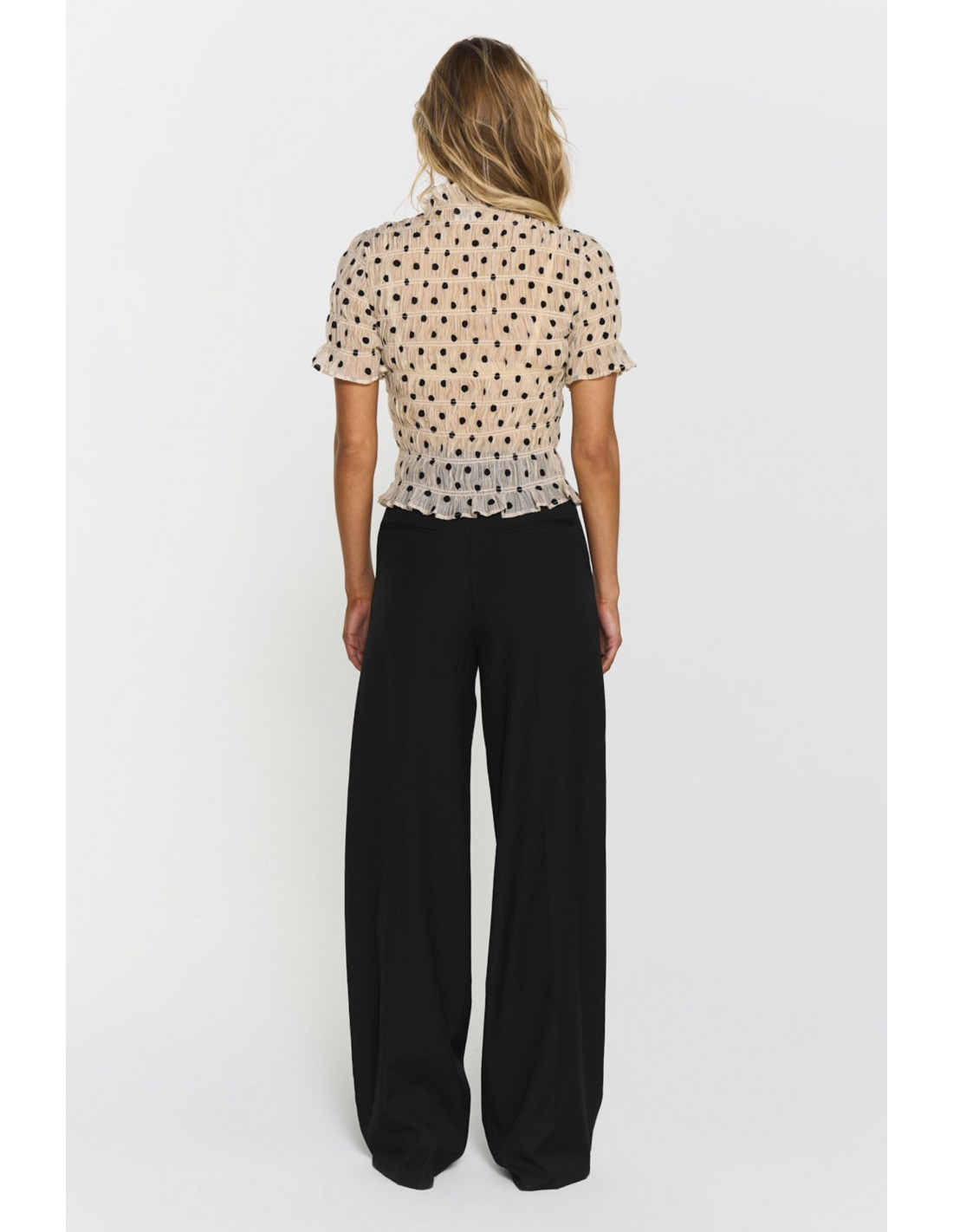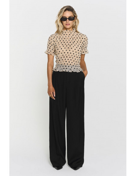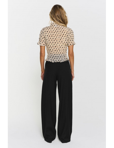 Snygga och moderna byxor i stretchigt polyuretanläder som ger en elegant men ändå avslappnad look. Camilla-modellen har en klassisk, smal passform som framhäver siluetten på ett smickrande sätt – perfekt både till vardags och fest. En tidlös garderobsfavorit som enkelt kan stylas med stickade tröjor, skjortor eller festtoppar.