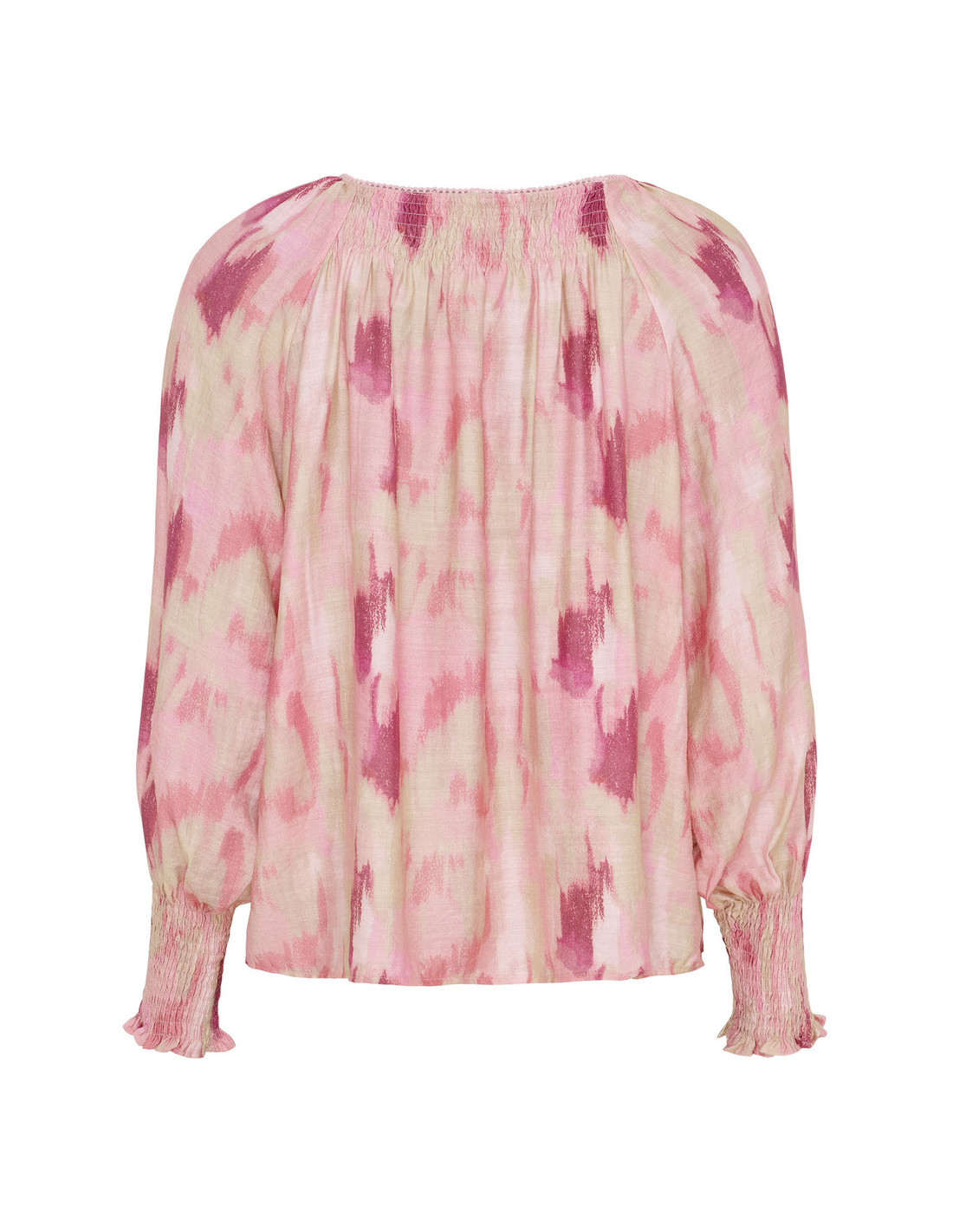 Gyta Smock Blouse är en klassisk skjortblus med en feminin twist. Den har den välkända kragen och en dold knäppning hela vägen ned, medan de smockade ärmsluten ger ett vackert och elegant uttryck. Det färgstarka printet lyfter looken och gör blusen till ett nyckelplagg i garderoben. Tillverkad i ett mjukt material med LENZING™ ECOVERO™ som ger en följsam...